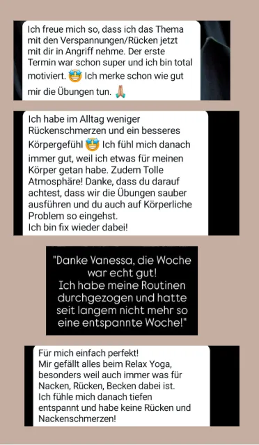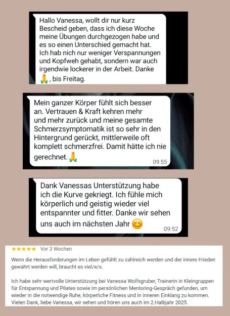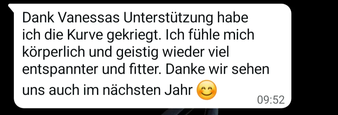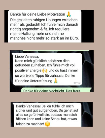 Hi, ich bin Vanessa – Bewegungs- und Mentalcoach, Trainerin für Stress- und Gesundheitsmanagement und ich weiß, wie es sich anfühlt, wenn die Verspannungen einfach nicht mehr locker lassen und es von Kopf bis Rücken zieht.